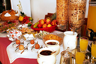 Lassen Sie sich schon zu Beginn des Tages von einem reichhaltigen Frühstücksbuffet im gemütlichen Gastraum verwöhnen. Urlaub für die ganze Familie!