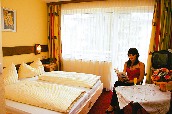 Gemütliche Zimmer mit Sat-TV, Dusche/WC und Balkon laden Sie zum Erholen ein. Auf Wunsch gibt es Familieneinheiten mit Verbindungstür.